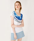 ANEMOSS SHIRTS FOR WOMEN: Anemoss Route womens shirts are made of %50 cotton, %50 modal fabric. The cotton fabric stands out featuring the softest, most comfortable maternity you can wear. This softness of the material makes wearing it every day with a modern and aesthetic look. MODERN FIT TSHIRTS FOR WOMEN: This short sleeved women's t-shirts is modern fit. The modern fit is between a slim fit and a classic fit shirt. The cut is designed to be not too loose or too tight. It fits your body perfectly without restricting your freedom of movement. The neckline lays beautifully (no sagging), the sleeves are the perfect length. The design is appropriate to pair with skirts and jeans. This womens tshirt has a better style for those who prefer to be comfortable and fashionable at the same time. SUITABLE ALL SEASONS: High quality cotton will have a smooth texture that is very gentle on your skin and layers well under anything. You will feel fresh and breathable even in the hottest of climates. It also resists shrinking, color fades, and deformation, which makes it an excellent everyday choice. SPECIAL DESIGN WOMENS SHIRTS: Anemoss Collection is created by artist Gamze Yalçın, inspired by the genuine breezes living under the unique wind, water and air of the Aegean Bay. Route pattern and Anemoss signature reflect the creative aura of the brand. With its minimalist details and clean look, Anemoss womens t shirts will keep you nice and stylish all the time. SIZE/FIT: Modern regular fit. The size of the model is S. Height: 1.80, chest: 81 cm, waist: 60 cm, hips: 89 cm.