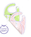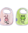 Set of 2 towel bibs: Pink Chanchin embroidered, Sprat Frog embroidered