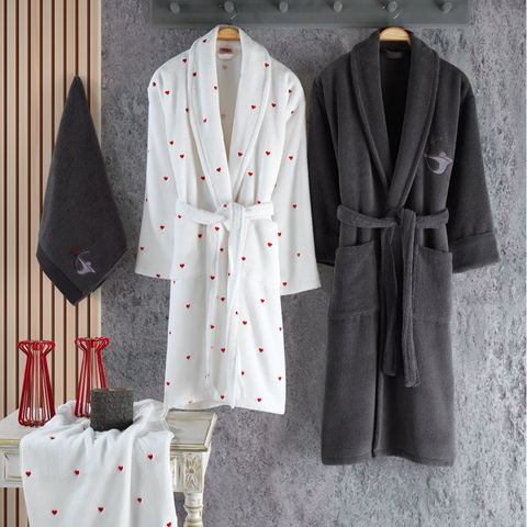 Hobby Lubow Love - Cotton Bathrobe Set White -Dark Gray