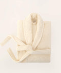 Koza Home Likya 100% Cotton Cream Dowry Bathrobe Set of 2 1 Bathrobe 1 Towel 1053A L-XL