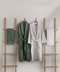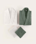 Koza Home Likya 100% Cotton Green-White 4-Piece Dowry Family Bathrobe and Towel Set 2 Bathrobes 2 Towels 1060A Standard