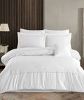 Double Satin Duvet Cover Set Double 800 TC Our satin duvet cover set is made of special 100% Cotton yarn, exclusive cotton satin and ultra-soft fabric. There are 800 tc of wire thread in 1 cm2. Our satin duvet cover sets are lightweight and soft to the touch. Therefore, it is skin-friendly while giving a silky feeling. Again, our satin duvet cover sets breathe with their air permeability and do not cause sweating. Satin duvet cover has a brighter and flowing structure because it goes through a more frequent weaving process than other types of weaving. Due to the use of long fiber fabric in the yarn of this product, the duvet cover is durable and long-lasting. Our duvet cover set will improve your sleep quality with its smooth and soft texture and bring elegance to your room with its different models. The duvet cover set is sent with its original box and packaging. Package Content: Double Satin Duvet Cover Set 1 Piece Duvet Cover 200*220 cm 1 Piece Bed Sheet 260*280 cm 2 Pieces Pillow Case 50*70 cm 2 Pieces Embroidered - Piping Pillow Case 50*70 cm 1 Piece Embroidered Throw Pillow 40*40 cm Production site : Turkey, Denizli Washing Instructions Wash your products in the machine or by hand with plenty of water in a delicate washing program at 40 0C. We recommend that you use colormatic detergent when washing. Iron the duvet cover sets with a warm iron. Do not leave the product wet. When washing, wash light and dark colors separately. Never use bleach or bleaching cleaning agents. Wash the products in your machine without squeezing them. It may deform when you compress it while full. Wash and dry the products that have been kept waiting for any reason before drying them. Do not dry your products at high temperatures. Wash and iron all parts of the duvet cover sets before use.