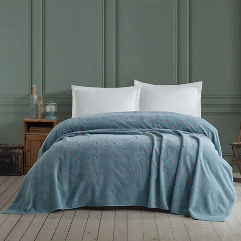 Koza Home Patara Blue Multi-Purpose 100% Cotton Double Bedspread 240x250 7504A Double