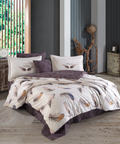Satin Double Sleeping Set While the satin double sleeping set reflects the style of your room, it will embrace you with its warmth on cold winter days. The products in the set are made of 100% cotton yarn and soft fabric. The satin sleeping set, which uses long fiber fabric in its yarn, is durable and long-lasting. The products in the set are skin-friendly due to their yarn and weaving structure and do not cause sweating. Let the double sleeping set accompany the charming elegance of your room and your pure and innocent sleep with its stylish and elegant pattern. Double sleeping set package: 1 Quilt, 1 Protector, 1 Sheet, 4 Pillowcases. Production location: Turkey, Denizli. Washing Instructions: Wash your products in the machine or by hand with plenty of water at 400C on a gentle washing program. We recommend that you use colormatic detergent when washing. Iron the duvet cover sets with a warm iron. Do not leave the product wet. When washing, wash light and dark colors separately. Never use bleach or bleaching cleaning agents. Wash the products in your machine without squeezing them. It may deform when you compress it while full. Wash and dry the products that have been kept waiting for any reason before drying them. Do not dry your products at high temperatures. Wash and iron all parts of the duvet cover sets before use.