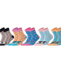 WOMENS CREW SOCKS: There are 5-pair crew socks in this set. Biggdesign women socks designed to be shown off. It offers amazing summer colors to help keep your feet stylish. You can wear them as dress socks, office socks, school socks, sport socks, indoor socks, home socks to reflect your style.