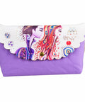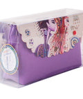 Makyaj yapmayı çok seven arkadaşlarınıza ya da sık sık seyahat eden dostlarınıza hediye etmek için harika bir seçenek olan makyaj çantası, lila rengi ve kapaklı tasarımı ile ön planda.