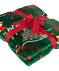 Dolce Bonita Home Wellsoft 3D TV Blanket Holly Santa Green