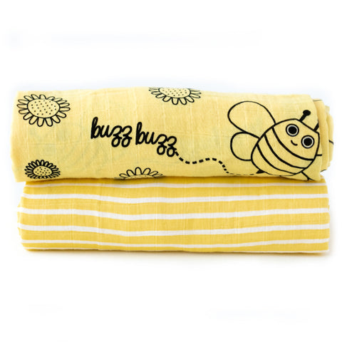 Milk&Moo Set of 2 Buzzy Bee Baby Muslin Swaddle Blanket