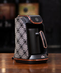• PREPARATION: Fill water into the pot, add one spoonful of Turkish coffee powder per cup, and stir thoroughly. Then insert the pot into the device and press the button. Enjoy your coffee.