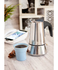 CAPACITY: Beautifully designed in stainless steel, this stovetop coffee maker brews up to 4 espresso-sized cups of coffee. The 4-cup model is just 5 inches -17 cm tall and 4 inches - 12 cm wide. Suitable for all types of hobs, including induction, it makes barista-style richer-tasting coffee. It is very easy to store and is a really solid option if you enjoy more than one serving of coffee.