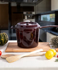 3-LAYER ENAMEL COATING: Lava cast iron dutch oven has been coated with 3 layers of enamel with 3 stages of firing technique. Primer layer protects the product against corrosion, gives resistance to high temperatures and thermal shock, the 2nd layer enamel gives high scratch and wear resistance and creates a flavor layer, 3rd layer enamel makes a smooth, attractive surface that is easily cleaned and adds a perfect elegance in presentation. PROTECTIVE GLASS ENAMEL: The cooking surface of this cast iron sauce pan is glass enamel. Since this enamel shows the properties of glass, it has a transparent color, so the inner surface preserves its original casting color. Glass is a natural and a non-toxic coating that will protect the surface and maintain it for longer periods of time. Not only it makes this cookware versatile and easy to use but also gives a smooth and shiny surface that is both easy to clean and requires no seasoning before use. HEAT RETENTION: This sauce pan has 3-qt. capacity and it weighs 4 pounds with the lid. Its slow heat distribution and strong heat retention make it great for medium and low-heat cooking, from slow-cooking meats to roasting vegetables to boiling pasta, deep-frying, poaching, and almost any other cooking task you can think of. The smooth interior makes sure that everything inside is cooked evenly, and it releases food easily. It can be used on all kitchen stovetops (except the microwave), and it's oven safe to 500 degrees F. PRESERVES VITAMIN&AROMA: The special design lid offers a unique feature. Spikes on the Lava lids create a self-basting system, where the lid's spikes, flatness, weight and tight fit create a perfect environment for steam to rise, condense, and evenly drip back for more tenderness and flavor. This makes your food juicy, tender, and more flavorful. HOW TO CLEAN LAVA ENAMELED CAST IRON: Although Lava enameled cast iron is dishwasher safe, hand washing with warm soapy water and a nylon scrub brush is recommended to preserve the cookware's original appearance. Always dry cookware thoroughly and replace pot protectors between the rim and lid before storing in a cool, dry place. To remove stubborn baked-on food, boil 2 cups of water and 4 tablespoons of baking soda. Boil for a few minutes, then use a pan scraper to loosen the food