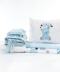 Buddy - Blue Duvet Cover Set Reflect your favorite style in your baby's room with the baby duvet cover set. Our duvet cover is made of 100% high quality and natural cotton yarn. Again, due to the use of long fiber fabric in its yarn, our baby duvet cover is durable and long-lasting. Our duvet cover allows your baby to sleep comfortably with its softness and texture in terms of fabric quality. It is friendly to your baby's skin and does not cause sweating. In addition, the model, which stands out with its soft and smooth sheet structure, offers a practical use by being easily fixed to the bed on which it will be laid. Let your baby's pure and innocent sleep accompany him while he sleeps in his room with the baby duvet cover set you choose. Baby Duvet Cover Set Package: 1 Duvet Cover, 1 Bed Sheet, 2 Pillow Cases. Production location: Turkey, Denizli. Washing Instructions: Wash your products in the machine or by hand with plenty of water on a gentle washing program at 400C. We recommend that you use colormatic detergent when washing. Iron the duvet cover sets with a warm iron. Do not leave the product wet. When washing, wash light and dark colors separately. Never use bleach or bleaching cleaning agents. Wash the products in your machine without squeezing them. It may deform when you compress it while full. Wash and dry the products that have been kept waiting for any reason before drying them. Do not dry your products at high temperatures. Wash and iron all parts of the duvet cover sets before use.