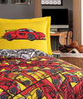 Hobby Cars Red - Poplin Studio Single Duvet Cover Set