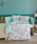 Mila Gray Baby Duvet Cover Set Reflect your favorite style in your baby's room with the baby duvet cover set. Our duvet cover is made of 100% high quality and natural cotton yarn. Again, due to the use of long fiber fabric in its yarn, our baby duvet cover is durable and long-lasting. Our duvet cover allows your baby to sleep comfortably with its softness and texture in terms of fabric quality. It is friendly to your baby's skin and does not cause sweating. In addition, the model, which stands out with its soft and smooth sheet structure, offers a practical use by being easily fixed to the bed on which it will be laid. Let your baby's pure and innocent sleep accompany him while he sleeps in his room with the baby duvet cover set you choose. Baby Duvet Cover Set Package: 1 Duvet Cover, 1 Bed Sheet, 2 Pillow Cases. Production location: Turkey, Denizli. Washing Instructions: Wash your products in the machine or by hand with plenty of water on a gentle washing program at 400C. We recommend that you use colormatic detergent when washing. Iron the duvet cover sets with a warm iron. Do not leave the product wet. When washing, wash light and dark colors separately. Never use bleach or bleaching cleaning agents. Wash the products in your machine without squeezing them. It may deform when you compress it while full. Wash and dry the products that have been kept waiting for any reason before drying them. Do not dry your products at high temperatures. Wash and iron all parts of the duvet cover sets before use.