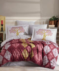 Double Satin Duvet Cover Set Our Double Satin duvet cover set is made of 100% cotton yarn, cotton satin and ultra-soft fabric. There are 80 strands of thread in 1 cm2. Our satin duvet cover sets are lightweight and soft to the touch. Therefore, it is skin-friendly while giving a silky feeling. Again, our satin duvet cover sets breathe with their air permeability and do not cause sweating. Satin duvet cover has a brighter and flowing structure because it goes through a more frequent weaving process than other types of weaving. Due to the use of long fiber fabric in the yarn of this product, the duvet cover is durable and long-lasting. Our duvet cover set will improve your sleep quality with its smooth and soft texture and bring elegance to your room with its different models. The duvet cover set is sent with its original box and packaging. Package Content: Double Satin Duvet Cover Set, 1 Duvet Cover 200 x 220 cm, 1 Bed Sheet 240 x 260 cm, 4 Pillow Cases 50 x 70 cm Place of Production: Turkey, Denizli Washing Instructions Wash your products in the machine or by hand in a delicate washing program at 40 0C. Wash with plenty of water. We recommend that you use colormatic detergent when washing. Iron the duvet cover sets with a warm iron. Do not leave the product wet. When washing, wash light and dark colors separately. Never use bleach or bleaching cleaning agents. Wash the products in your machine without squeezing them. It may deform when you compress it while full. Wash and dry the products that have been kept waiting for any reason before drying them. Do not dry your products at high temperatures. Wash and iron all parts of the duvet cover sets before use.