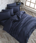 Hobby striped navy blue - double jacquard satin bed linen set