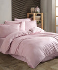 Hobby Striped Powder - Double Jacquard Satin Duvet Cover Set