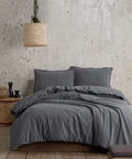 Koza Home Boho Plain Natural Gray 100% Cotton Duvet Cover Set Double 200 x 220 7034A 200 x 220