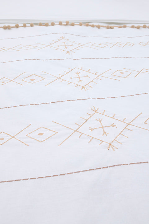 FARALYA NEVRESTIM SET Product Description Faralya Nevrestim Set, where ethnic patterns are combined with minimal design, provides a quality sleep experience in your bedrooms with its soft and comfortable structure made of 100% cotton. It will add elegance to your bedroom with its pompom details. Areas of Use Suitable for use in your bedrooms. Washing Instructions Can be washed in the washing machine. Dimensions Double Single