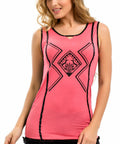 The main color of the sports blouse is vivid color of pink.