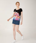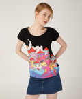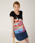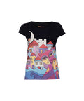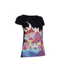T-shirt on which Bahar Karabenli Yılmaz's "Owl and City" is applied. The pattern of the T-shirt is comfortable and lightly cast. It is a spacious and wide cut with a crew neckline. It is stylish and comfortable with a design printed on the front side of it and made of soft cotton fabric with short sleeves. It offers a long-lasting use with its cotton and modal fabric.