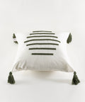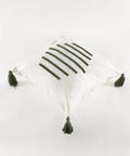 Koza Home Craft Green Stripe Patterned Tassel Beaded Fiber Filled Cushion 43 x 43 35301A 43 x 43