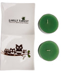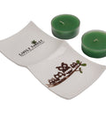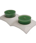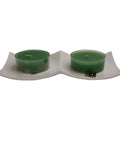 Green Tealight Candle Set by BiggHome Produced from natural substances, this exclusive design candle set is perfect for everyday use, wedding, events, aromatherapy, spa, meditation, and bathroom setting. It's perfect for use when you get home after a busy day and try to relax, or when you want to create a romantic environment with your beloved ones. The candle set includes 2 odorless candles and 1 ceramic candle holder. Although the candles are used up after a while, the candle holder can be used for a long time. Contents: 1 ceramic candle holder, 2 pcs candle.