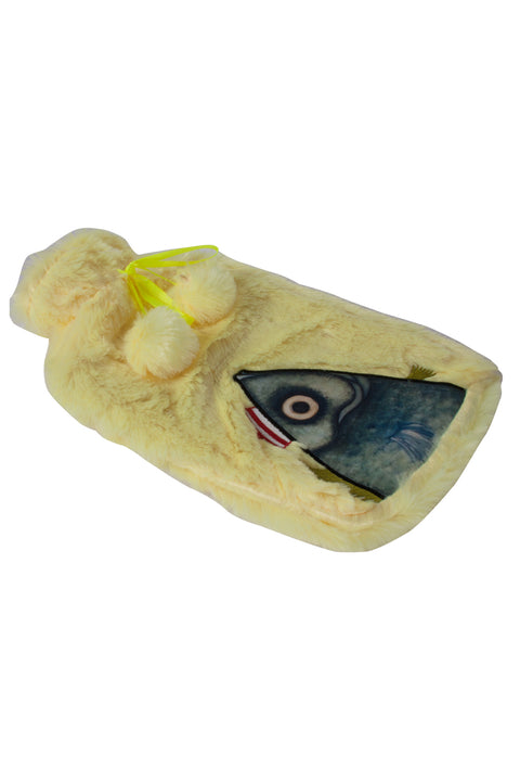 PRODUKTMERKMALE: Plüschbezug, Wasserbeutel aus Gummi, Fassungsvermögen: 2 Liter, Größe: 20x35 cm, Farbe: Hellgelb