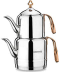 The secret of a freshly brewed, delicious cup of tea is Korkmaz Çintemani Teapot. Tea has a huge role in our lives; breakfasts, chit-chats, after dinner... In order to brew a good tea, a good teapot is a must. Korkmaz Çintemani Tea Pot stainless steel turkish teapot allows you to brew the tea you want in the most delicious way. Korkmaz Çintemani Turkish Tea Set, which completes your kitchen decoration with its elegant design, meets all your expectations both in terms of appearance and functionality. Made of recyclable materials so the tea pot is eco-friendly. the Solar Base base allows  high thermal conductivity. You can easily clean the teapot, so you can save energy and time.