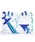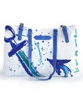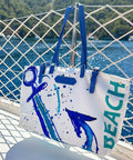 ANEMOSS BEACH BAG: Anemoss anchor patterned women's beach bag will be favorite complementary on summer days. Designed with vibrant colors and patterns from life, the bag with magnetic closure can be carried in the hand or on the shoulder.
