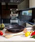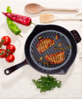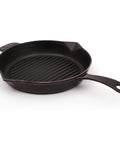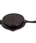 3-LAYER ENAMEL COATING: Lava cast iron grill pan has been coated with 3 layers of enamel with 3 stages of firing technique. Primer layer protects the product against corrosion, gives resistance to high temperatures and thermal shock, the 2nd layer enamel gives high scratch and wear resistance and creates a flavor layer, 3rd layer enamel makes a smooth, attractive surface that is easily cleaned and adds a perfect elegance in presentation. PROTECTIVE GLASS ENAMEL: The cooking surface of this grill pan is glass enamel. Since this enamel shows the properties of glass, it has a transparent color, so the inner surface preserves its original casting color. Glass is a natural and a non-toxic coating that will protect the surface and maintain it for longer periods of time. Not only it makes this cookware versatile and easy to use but also gives a smooth and shiny surface that is both easy to clean and requires no seasoning before use. EASY TO USE: This fry pan has 2 qt. capacity and it weighs 5 pound. It is made of durable enameled cast iron, has a convenient handle with an opposing loop handle for easy handling, high ridges for deep sear marks, sloped sides for better grilling, and 2 pour spouts. It can be used on all kitchen stovetops (except the microwave), and it's oven safe to 500 degrees F. PRESERVES AROMA: Lava grill pan is unique in barbeque style cooking.  It conducts and retains heat for a long time, so searing hearty meats like chicken or steaks is easy. Firstly, high heat of Lava pan seals the surface of meat. This retains the taste, water and all nutritional values of the food sealed. Secondly, only some part of the meat contacts with the pan thanks to the grill drains on surface ensuring that it is easy to separate meat from pan and it forms nice burning marks on meat.  HOW TO CLEAN LAVA ENAMELED CAST IRON: Although Lava enameled cast iron is dishwasher safe, hand washing with warm soapy water and a nylon scrub brush is recommended to preserve the cookware's original appearance. Always dry cookware thoroughly and store in a cool, dry place. To remove stubborn baked-on food, boil 2 cups of water and 4 tablespoons of baking soda. Boil for a few minutes, then use a pan scraper to loosen the food