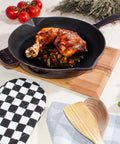 LAVA CAST IRON SKILLET: Lava is specialized for heating and appliance industry. With 40 years of experience in casting molding, sand preparation, melting, sandblasting/grinding and enamel coating plant as the leading company in the world, Lava’s main production issue; cast iron cookware, pans, grills and stove top casting grills. The world’s highest quality cast iron is processed together with electrophoresis enamel coating technology in the production facilities of the ISO9001 standard. 3-LAYER ENAMEL COATING: Lava cast iron skilllet has been coated with 3 layers of enamel with 3 stages of firing technique. Primer layer protects the product against corrosion, gives resistance to high temperatures and thermal shock, the 2nd layer enamel gives high scratch and wear resistance and creates a flavor layer, 3rd layer enamel makes a smooth, attractive surface that is easily cleaned and adds a perfect elegance in presentation. PROTECTIVE GLASS ENAMEL: The cooking surface of this frying pan is glass enamel. Since this enamel shows the properties of glass, it has a transparent color, so the inner surface preserves its original casting color. Glass is a natural and a non-toxic coating that will protect the surface and maintain it for longer periods of time. Not only it makes this pan versatile and easy to use but also gives a smooth and shiny surface that is both easy to clean and requires no seasoning before use. HEAT RETENTION: This fry pan has 2.4-qt. capacity and it weighs 5 pounds. Its strong heat distrubition and retention make it great for searing steaks and frying potatoes, vegetables and eggs. The smooth interior makes sure that everything inside is cooked evenly, and it releases food easily. It can be used on all kitchen stovetops (except the microwave), and it's oven safe to 500 degrees F. HOW TO CLEAN LAVA ENAMELED CAST IRON: Although Lava enameled cast iron is dishwasher safe, hand washing with warm soapy water and a nylon scrub brush is recommended to preserve the cookware's original appearance. Always dry cookware thoroughly and store in a cool, dry place. To remove stubborn baked-on food, boil 2 cups of water and 4 tablespoons of baking soda. Boil for a few minutes, then use a pan scraper to loosen the food