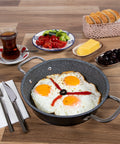 SERENK EGG PAN: Serenk egg pan is manufactured with a very long-lasting PFOA-free granite coating. The secret of tasty and healthy cooking comes from the fact that Serenk does not mix anything else with natural flavours. Comfortable handles designed with a safe connection to be tight for all time.