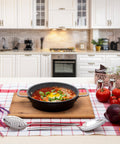 EXTRA THICK BOTTOM: This frying pan has a flat cooking surface for efficient searing and sautéing. Extremely heat-responsive bottom transfers heat and spreads it quickly and evenly, throughout the pan, all the way to the rim.