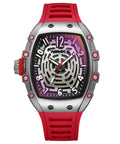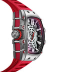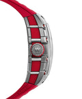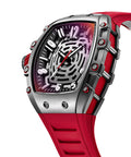 Features: Case Diameter: 42.5 mmx49.6 mmCase Shape: Case Stone: NoGlass Feature: Mineral PhotochromicStyle: Sports WatchesCase Color: Metallic GrayDial Color: Dial Stone: NoStrap Type: SiliconeColor: RedWater Resistance: 3 ATMChronometer: NoCalendar: NoAlarm: None