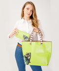 This Pistachio tote bag is really comfortable to carry, and it’s fairly lightweight. Its soft, structured bag has a large size to be suitable for a work trip, a big day at the office, or an important event. It can comfortably hold your laptop, as well as perfect for papers, pens, and anything else you need. This large size will keep your electronics safe on a business trip or on the way to the office.